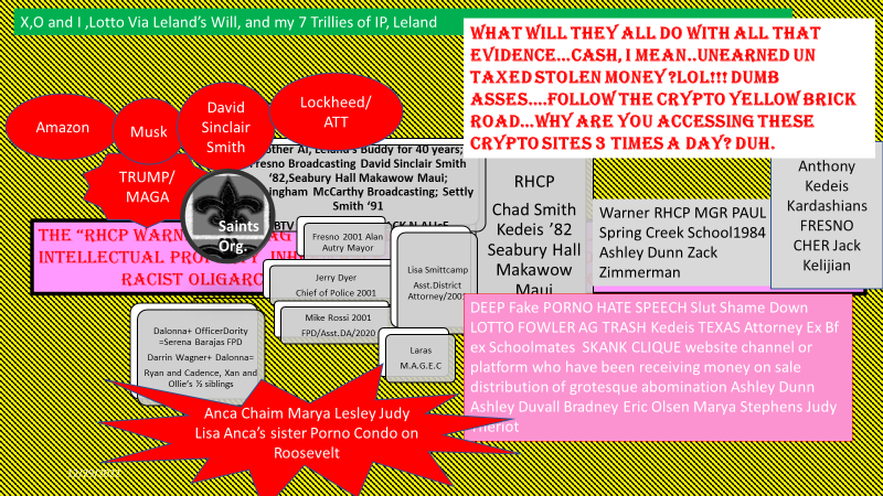 If I were the County of Fresno, City of Fresno, Central Unified School District, California Highway Patrol, ATT, SBTV, Amazon,Space Ex,RBI, Warner, Disney, on any other entity that has had a person , or persons under their employ,or seated, appointed or elected, that has engaged knowingly in 21 years of sex and human trafficking of myself , my son my daughter Jimmy Gray or Daylon Perry for the cover up for theft of lotto money, inheritance, intellectual property, private wealth, benefactor gifting and committed "slutshame down deep fake character assassinations upon me and or my children, exploiting thousands of other citizens rights, and privacy ,committing sex crimes , child pornography distribution, identity theft ,I would quickly and without regret get some kind of legal document on file to separate your organizations ,entities, municipalities, corporations from the association and employment of those criminals with quickness, but I am not a lawyer, I am a US HISTORY special Needs teacher, to reduce your corporate criminal culpability a