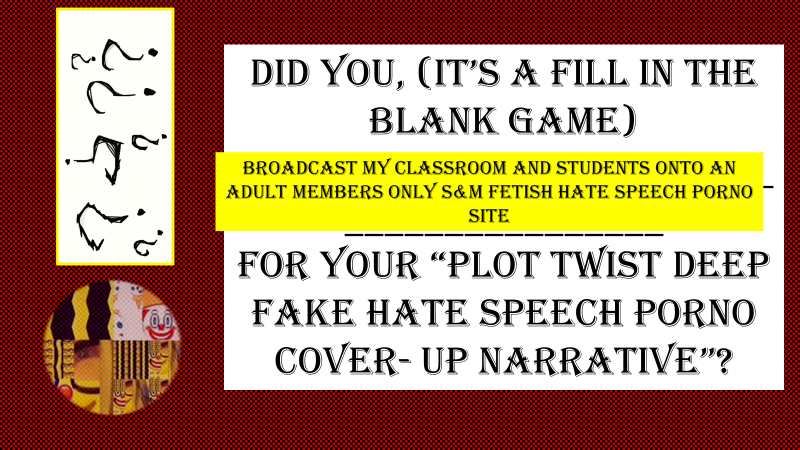 "hey, look at me , I am stealing all of this girl's IP, private wealth, inheritance and now I am doing all of this deep fake slut shamming and slander to cover it up involving cops producing distributing and selling it ...to a paying bunch of witnesses....I am a fucking dumb ass...and I am begging to be sued and to go to prison, please help me, I am out of control and it is out of control and I can't get out or help myself... "