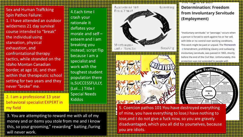 Again this is a daily smack down but should be referenced anytime your idiotic spin machine would like to revisit this stupidity. I do not need a criminal defense attorney, so stop parading lawyers through my privacy , illegally making them culpable, while pitching them falsified narrative of manufactured photshopped green screened and voice over dubbed material you are trying to suggest is me and getting them to defend me over your criminal actions and fabrications, that you also broadcast , is that correct? Are you all fucking dunces? TIP: Get yourselves a criminal defense TEAM...tell them everything before you get arrested so you aren't scrolling the yellow pages last minute trying to make federal bail, and filling a REAL LEGAL professional in via a payphone in a holding cell trying to cover 21 years of fraud sex and human trafficking lotto theft, inheritance theft intellectual property theft, hostaging slavery child exploitation broadcasting public school minors onto which platform exactly ? I mean there is just too much to lay on an attorney on the fly on the phone to be able to post bail....and frankly you need someone NOW to advise you on how to stop being such fckng idiots before you end up incarcerated for 21 + years. Maybe screenshot this and keep it handy on your phone incase you slip back into severely cognitively impaired and or stoned out of your mind land, and try to run another criminal defense lawyer via your illegal surveillance illegal access into my privacy to get them to do a competency evaluation for continued illegal power of attorney over my rights and assets, and or to defend me ...especially if you are broadcasting and manufacturing falsified content for the frame up...are you on CRACK?????Because no one does shit this stupid but a crack head....js.